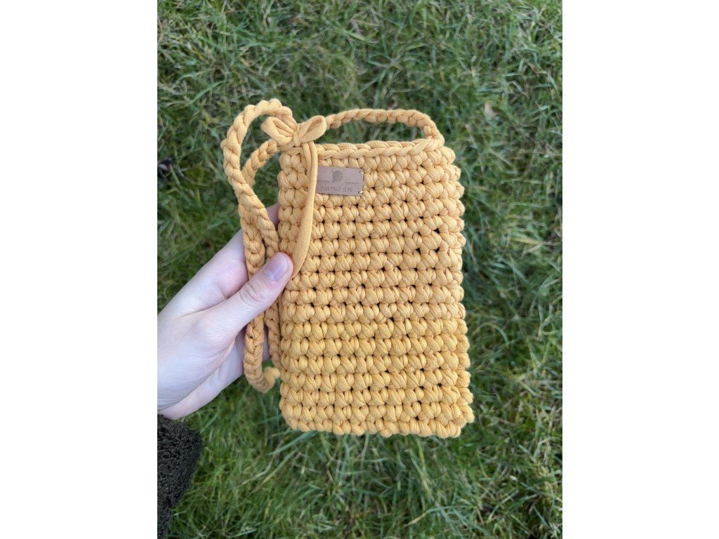 Taška je v hořčicové barvě. Její rozměry jsou: 11 cm X 17 cm ( ideální pro mobily do 9cm X 16 cm), poutko: 110 cm.
