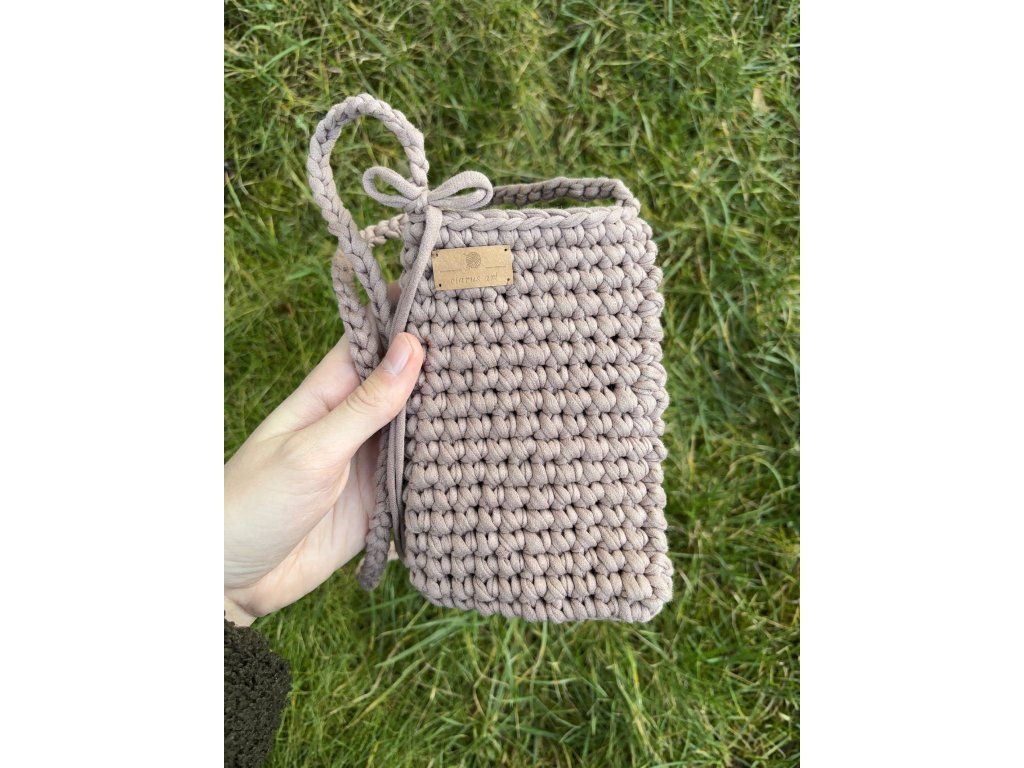 Ručně háčkovaná taška na mobil, ideální k nošení přes rameno i přes hlavu.