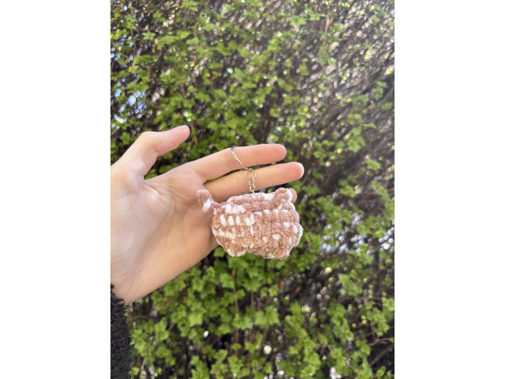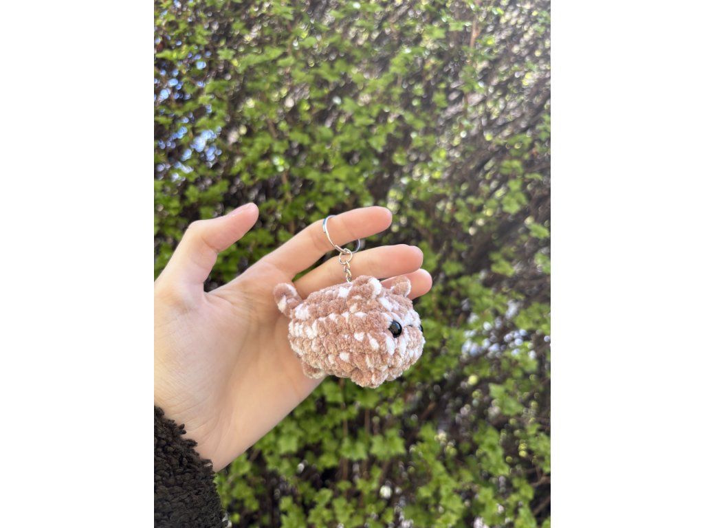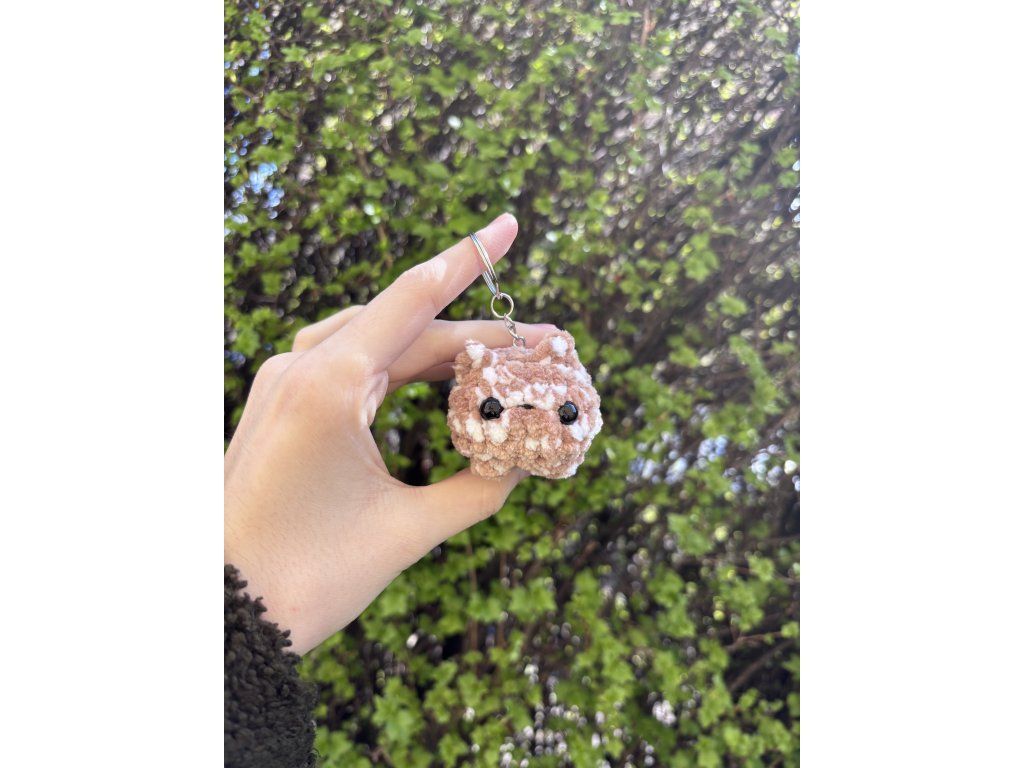 Hravá a rozkošná klíčenka ve tvaru kočičky ve hnědobílé barvě. Vhodná jako přívěsek.