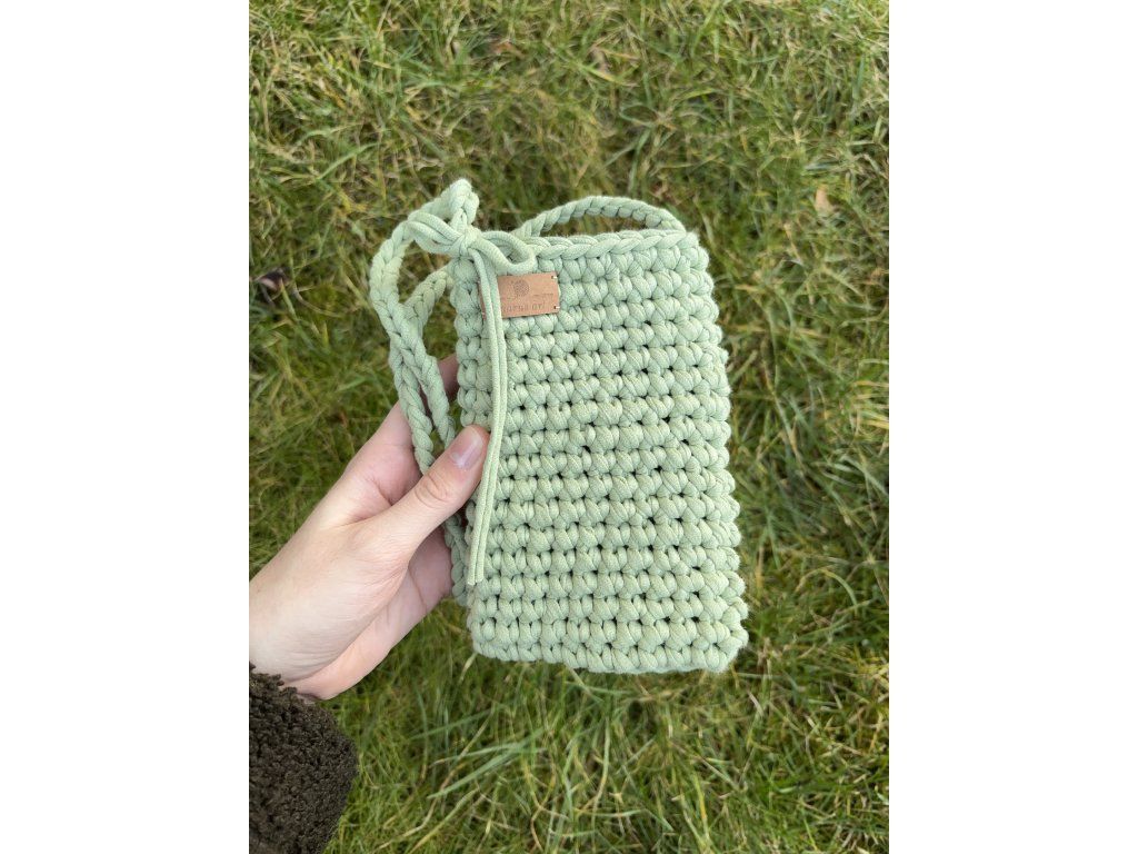 Ručně háčkovaná taška na mobil, ideální k nošení přes rameno i přes hlavu.